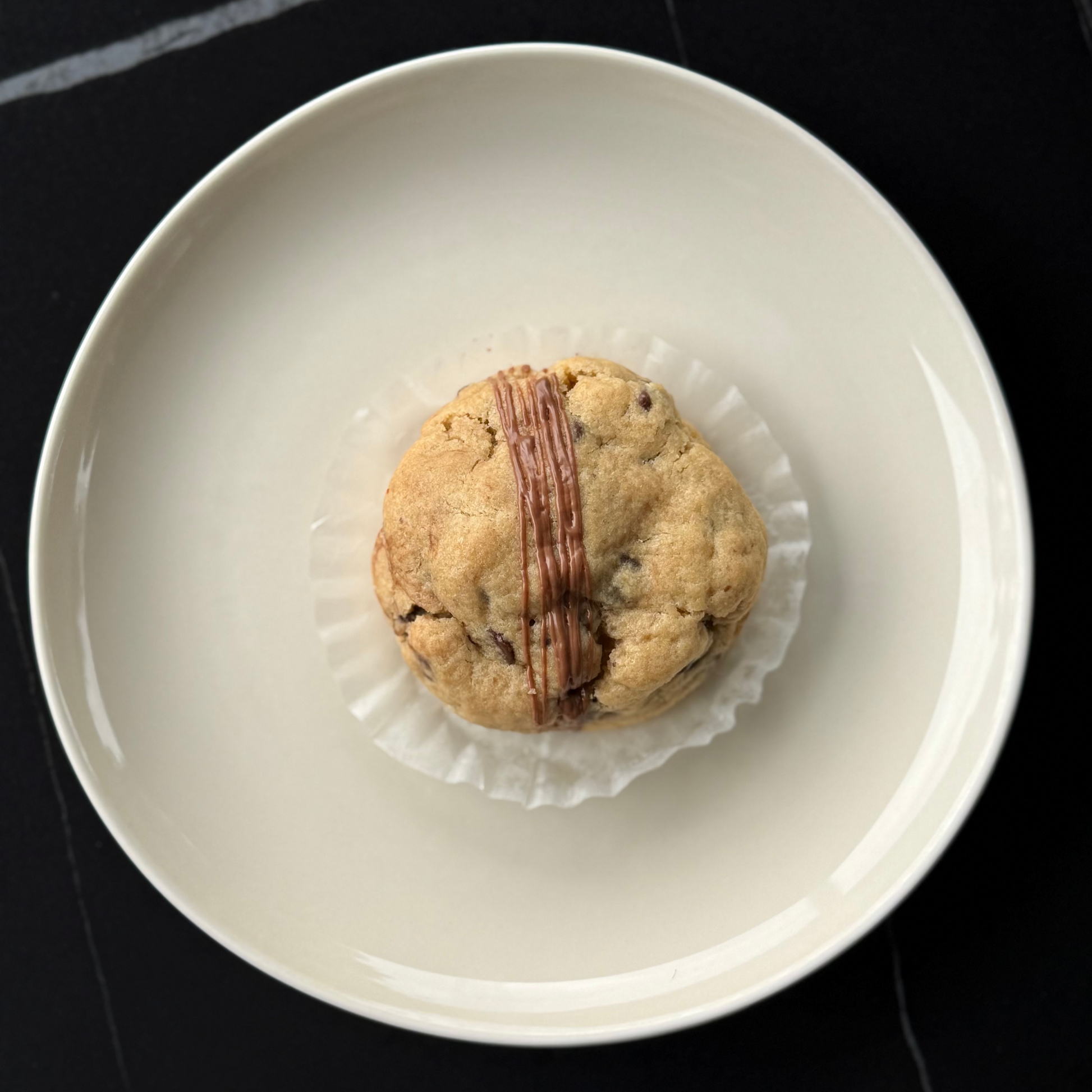 Our Chocolate Chip Cookie with Nutella is a thick, buttery cookie packed with premium semi-sweet chocolate chips and a luscious Nutella® center that melts into every bite. Golden and slightly crisp on the outside, soft and gooey inside, it delivers the perfect balance of rich hazelnut chocolate spread and warm, chewy cookie dough.